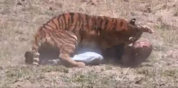 約翰左跳(tiào)右竄和(hé)老(lǎo)虎對(duì)峙,更加激γλ起了(le)老(lǎo)虎的(de)獸性。
